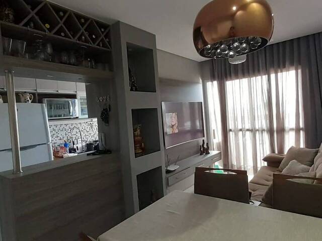 • Apartamento com planejado em 2 quartos, sala possui painel de tv e sacada com churrasqueira a gás.